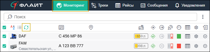 Данные объекта мониторинга из всплывающей подсказки можно также посмотреть в дополнительной информации, нажав на иконку этого объекта в списке.