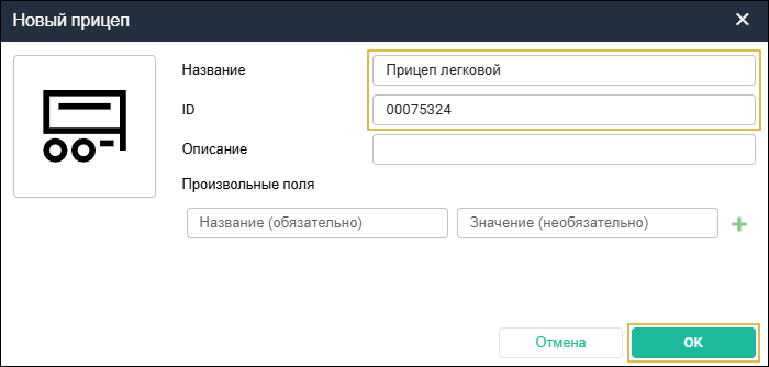- Название — укажите произвольное название прицепа, которое будет использоваться в системе Флайт.