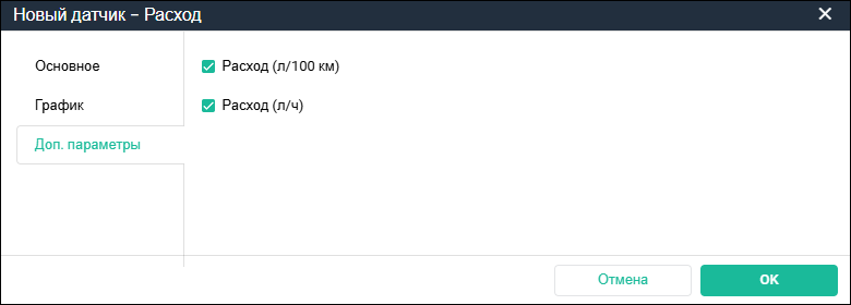 По параметру расхода — будут использоваться записи устройства мониторинга о расходе топлива. Далее выберите из выпадающего списка «Источник данных» тип записей: