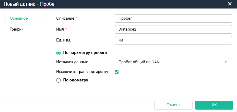 Определите способ получения пробега — источника данных для датчика, выбрав один из вариантов: