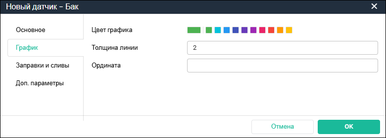 - Цвет графика — цвет линии графика показаний датчика бака.